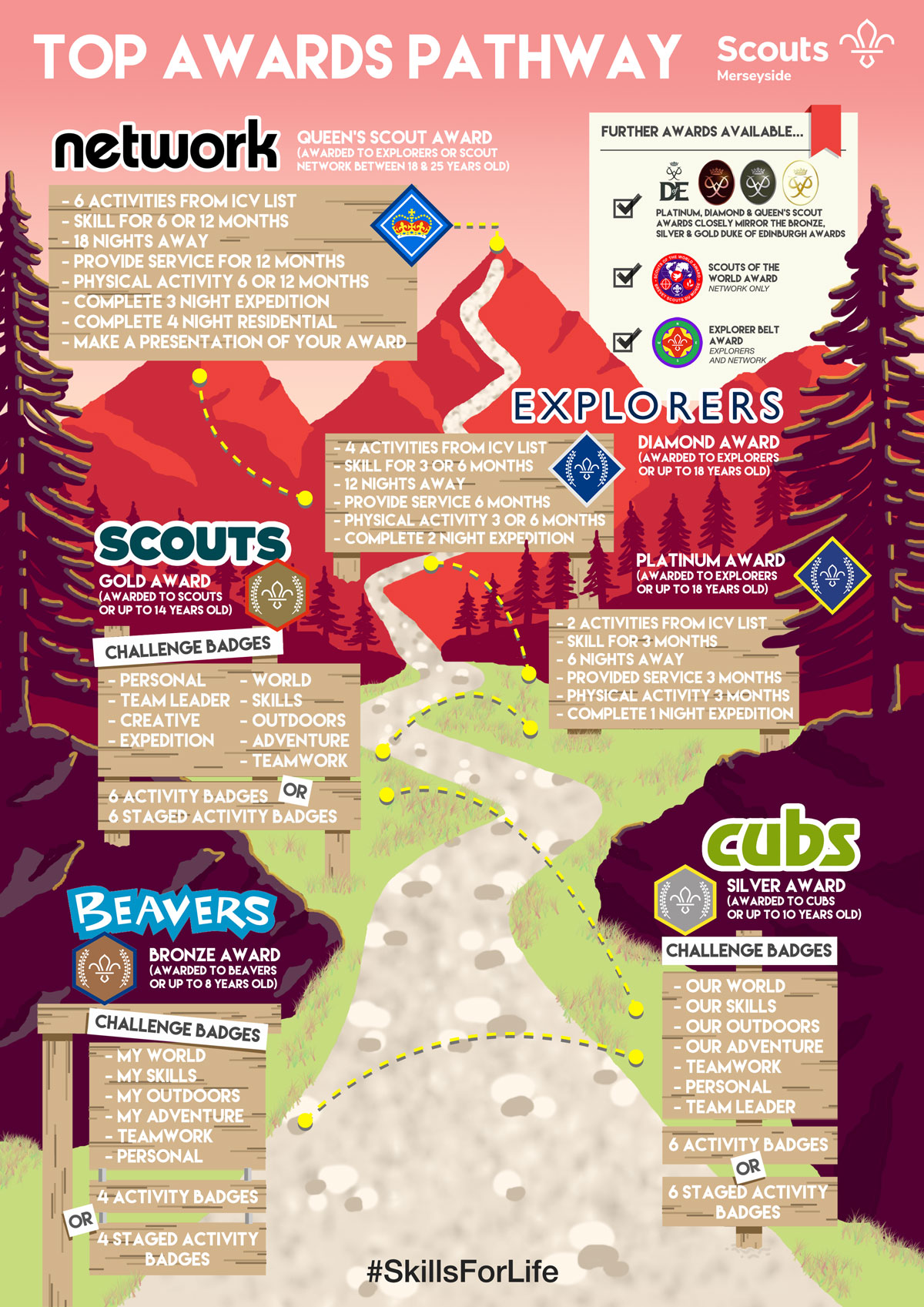 We wanted to increase the visibility of our Top Awards and make the Queen’s Scout Award something all our members strive for, and Kane Maloney stepped in to help us with this by illustrating the pathway. Kane tells us how…